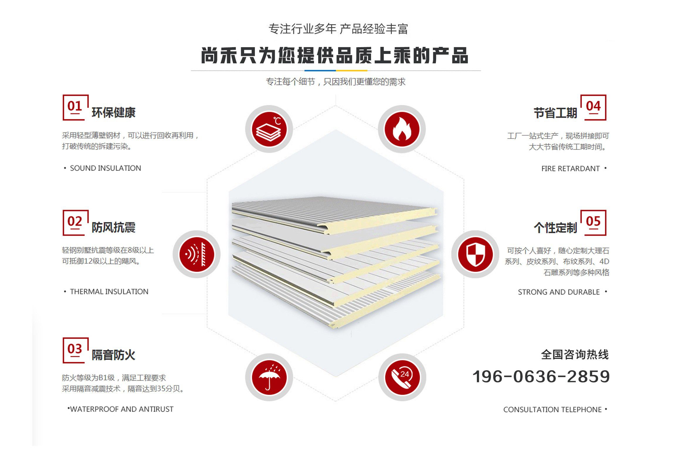 山東尚禾經(jīng)貿(mào)有限公司是集板材設(shè)計(jì)、研發(fā)、生產(chǎn)、施工、一體化的科技公司,并在同行業(yè)中率先通過(guò)了質(zhì)量、環(huán)境、安全管理體系認(rèn)證。公司2011年投入資金2000余萬(wàn)元引進(jìn)世界先進(jìn)的聚氨酯節(jié)能板連續(xù)生產(chǎn)線、意大利進(jìn)口發(fā)泡系統(tǒng),采用六組份在線自動(dòng)操作混合澆注技術(shù),在線一次性完成社會(huì)配料中心或工廠的配比混合工藝,并可以根據(jù)溫度在線自動(dòng)調(diào)整,從而生產(chǎn)處與眾不同的高強(qiáng)度、節(jié)能型、綠色環(huán)保的聚氨酯夾芯板。(其使用年限高于同行業(yè)其他品牌5-10年) 公司主要經(jīng)營(yíng)范圍包括聚氨酯夾芯板,PU夾芯板,冷庫(kù)板,潔凈板,聚氨酯冷庫(kù)板,冷庫(kù)保溫板的設(shè)計(jì)、生產(chǎn)、銷售、技術(shù)指導(dǎo)、安裝及一體、以及進(jìn)出口業(yè)務(wù),是中部六省最大的綠色節(jié)能建材生產(chǎn)基地。聚氨酯夾芯板年產(chǎn)200萬(wàn)平方米、PU夾芯板、冷庫(kù)保溫板500萬(wàn)平方米、鏈整產(chǎn)業(yè)綜合實(shí)力,開(kāi)創(chuàng)了六省至中西部創(chuàng)新型中小名企總部基地,并將著力推進(jìn)中國(guó)中西部地區(qū)集成房屋住宅產(chǎn)業(yè)化發(fā)展進(jìn)程?! 】萍紕?chuàng)新、節(jié)能典范。千萬(wàn)間始終秉承“誠(chéng)信、合作”的企業(yè)文化精髓,長(zhǎng)期致力于鋼板材結(jié)構(gòu)節(jié)能建筑產(chǎn)業(yè),愿與社會(huì)各界攜手合作,共鑄綠色、環(huán)保美好未來(lái)。 產(chǎn)品具有良好的絕熱、阻燃、隔音、環(huán)保、耐久性能,可廣泛應(yīng)用于工業(yè)、商用建筑內(nèi)外墻、以及民用建筑外墻保溫、空調(diào)通風(fēng)系統(tǒng)、專用防火保溫門等領(lǐng)域。 我們始終秉承...
